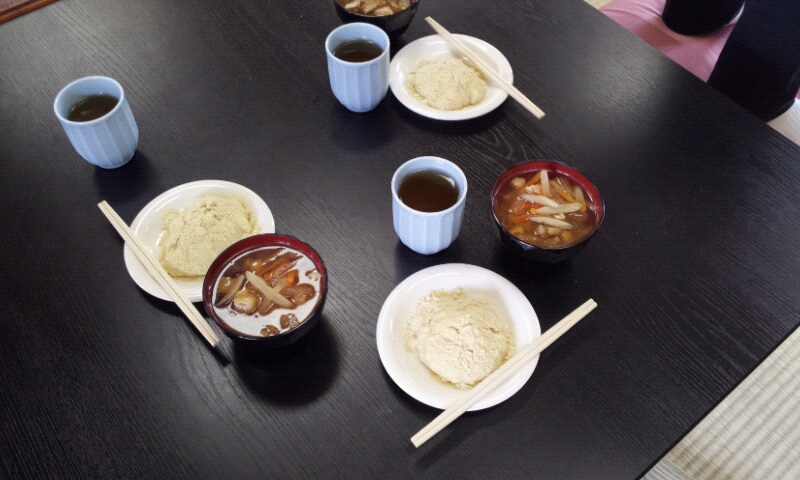 道の駅でお土産購入後、クラスごとに宿舎でもちつき体験。