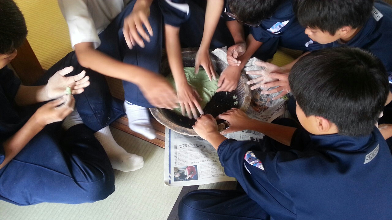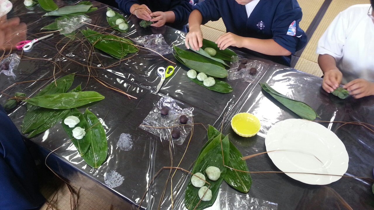 朝食後、各宿舎で笹団子作りに挑戦。