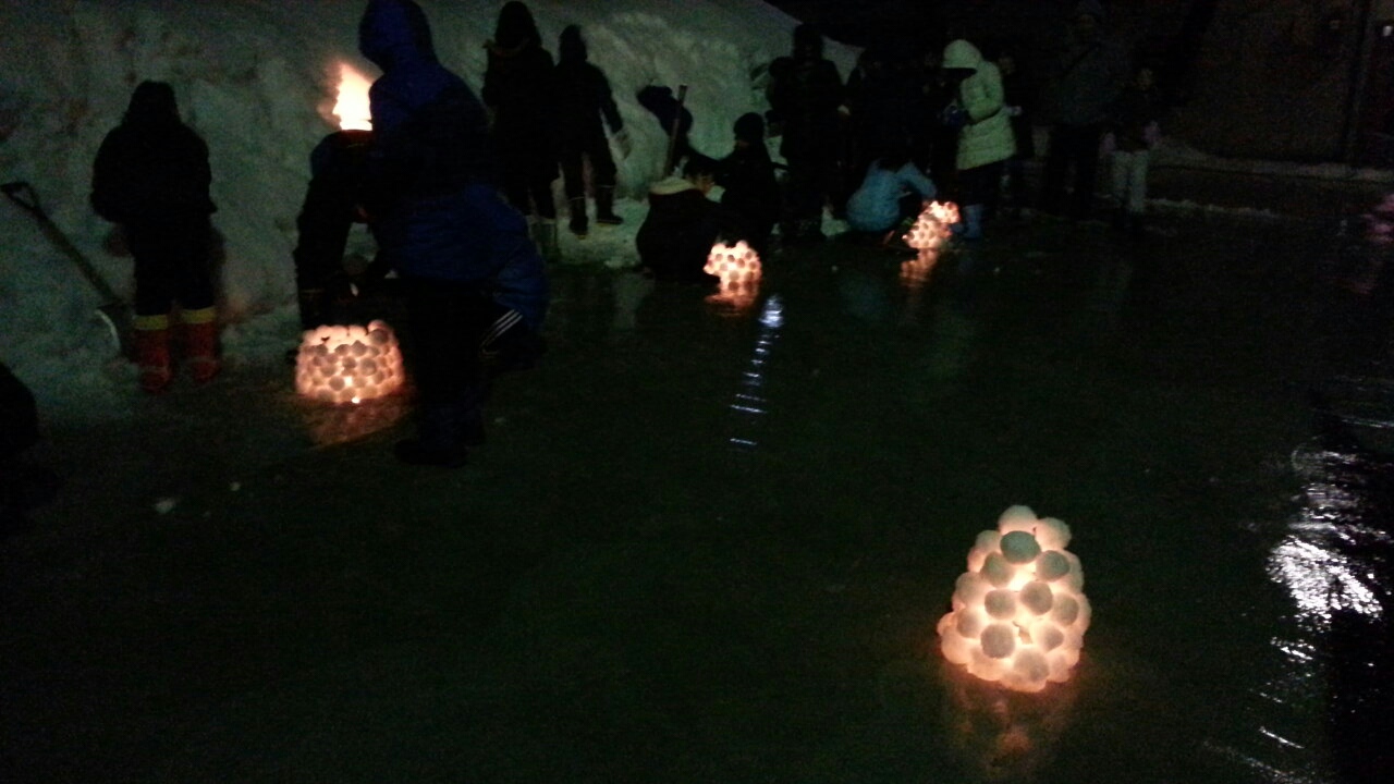 夕食後は各宿舎で雪灯籠つくりを・・・・
