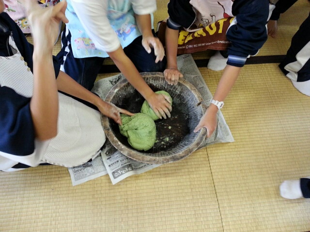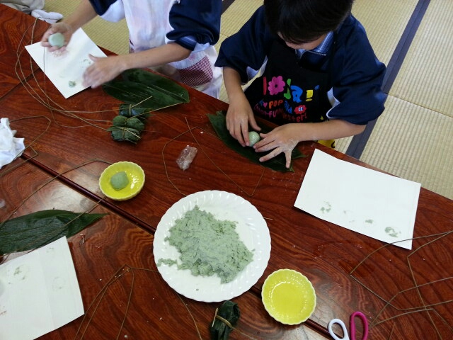 今日は午前中、食文化体験、笹団子作りに挑戦。