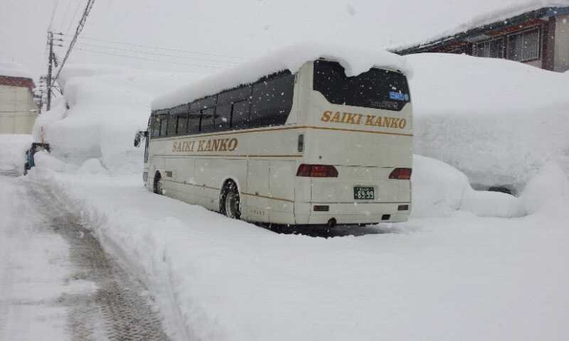 運転手さんは安全第一、昨日は後輪にチェーンを巻いて到着、
