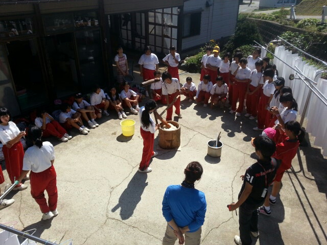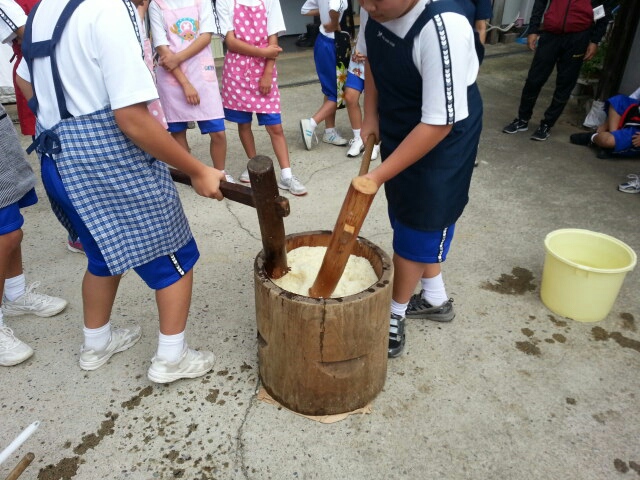 全員の生徒さんから一生懸命ついてもらい、モチモチの良いお餅がつきあがりました。