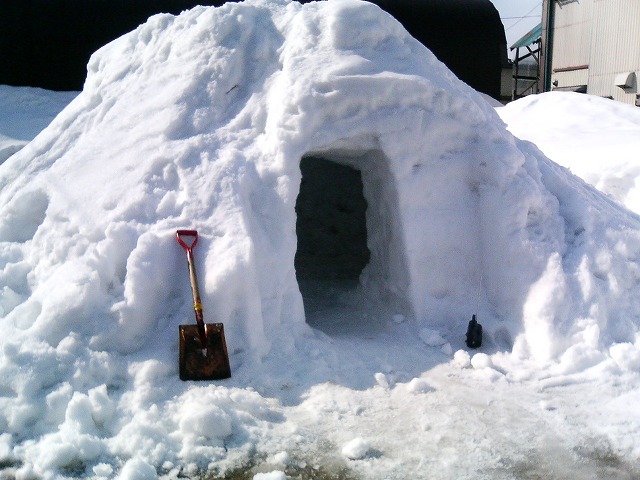 体験の一つにかまくらがあり、あらかじめ雪を集めて掘っときました。