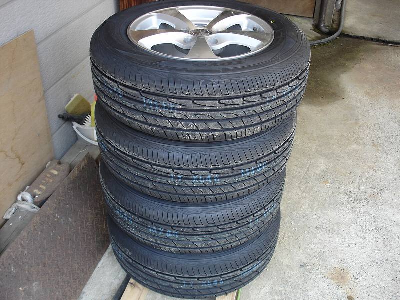 新車時に着いていたタイヤが9年経ち、溝はたくさんあるものの
