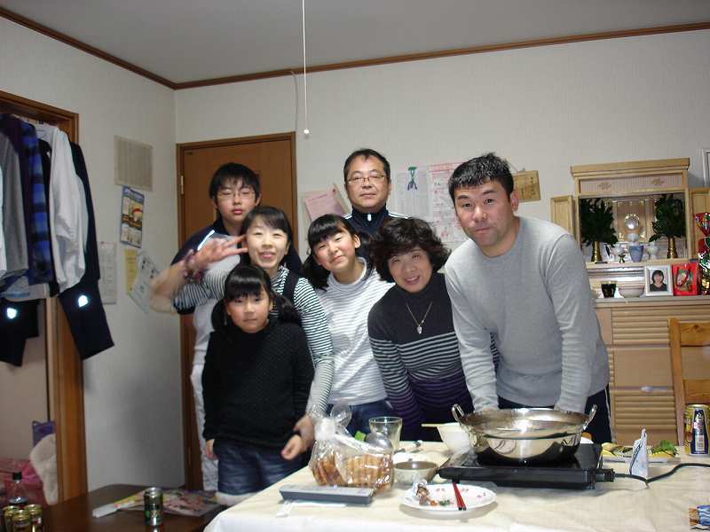 中村家の雄一お父さんと、中2の聡希君と一緒に記念写真。