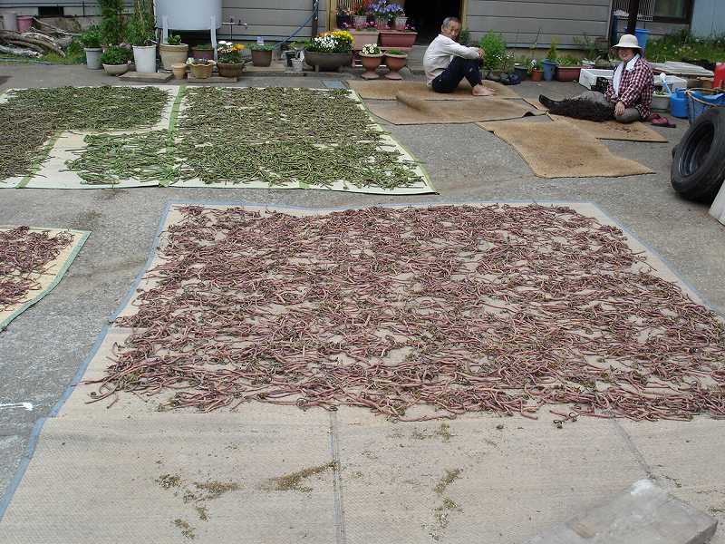 お父さんがぜんまいを採り、お母さんが干してもんでいます。