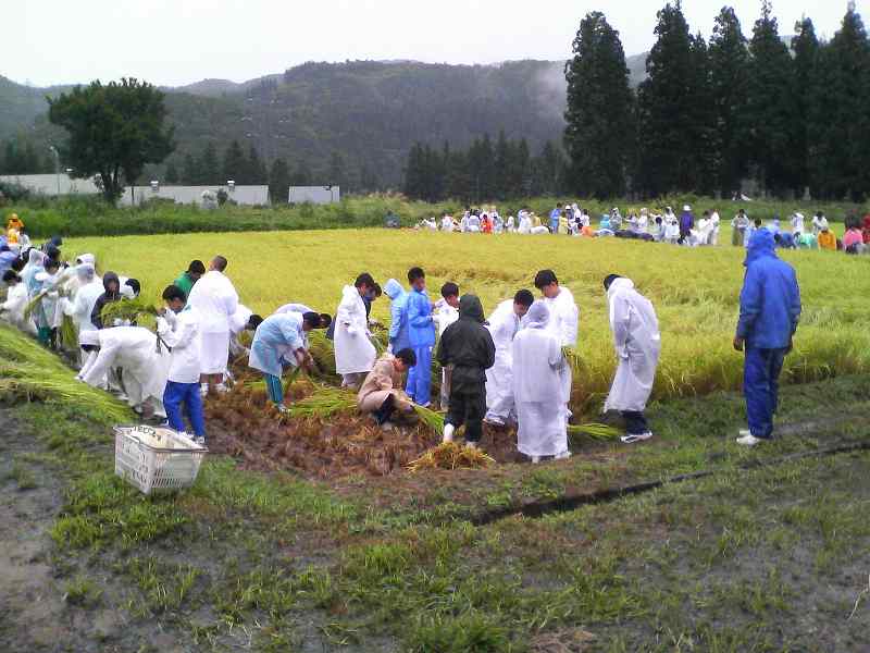 こんなお天気でしたが、こども達は元気に刈り取っていました。
