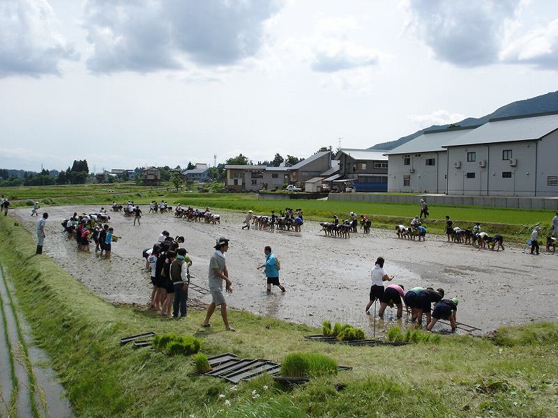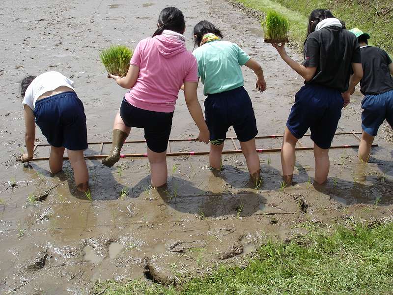 昼食後大谷内の田んぼで田植えを行いました。