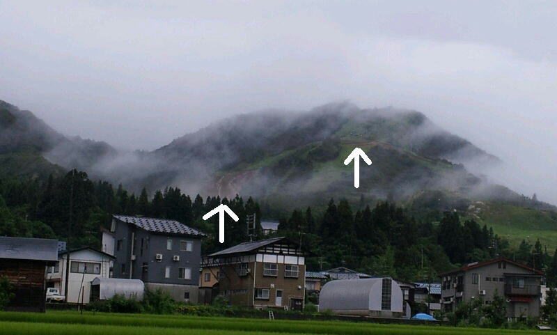 とても分かりづらいですが、須原スキー場の第二ロマンスリフト、大会競技で使う斜面が大きく崩落しています。左側茶色い部分。