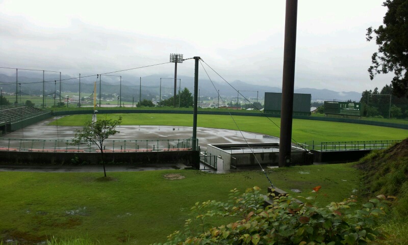 合宿がはじまるので、守門の旅館民宿が集まり、朝4:30-7:00まで地元のサンスポーツランド野球場の草取りです。