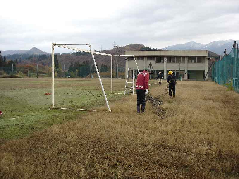 守門サンスポーツランドのサーカーゴールの片付け、冬支度です。