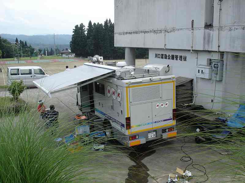 NHK新潟放送の中継車、朝早いので前日からの準備です。