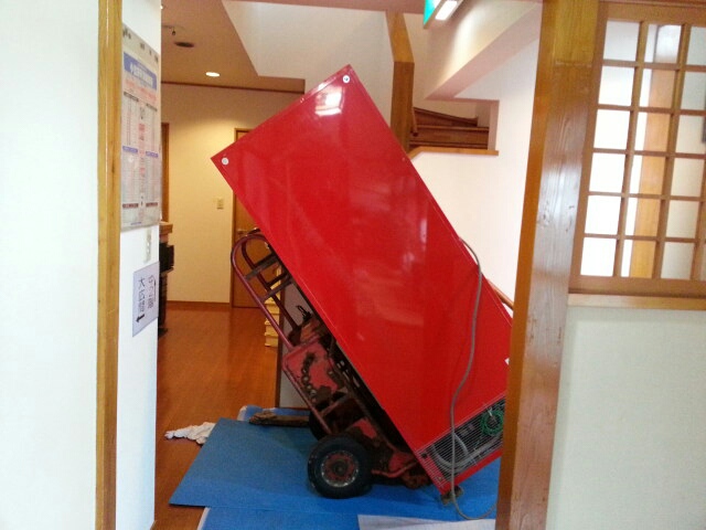 専門の業者さんから来てもらい、台車に乗せて撤去です。