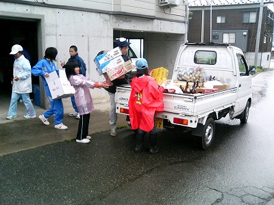 7:30からは小・中学校合同の空きびん、アルミ缶回収です。