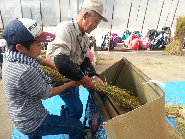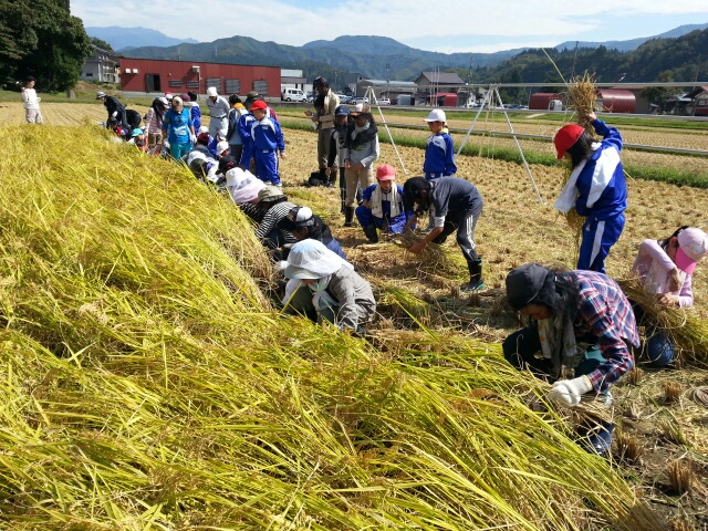 須原小学校5年生は昨日学校田を稲刈りしたので、2日続けて。