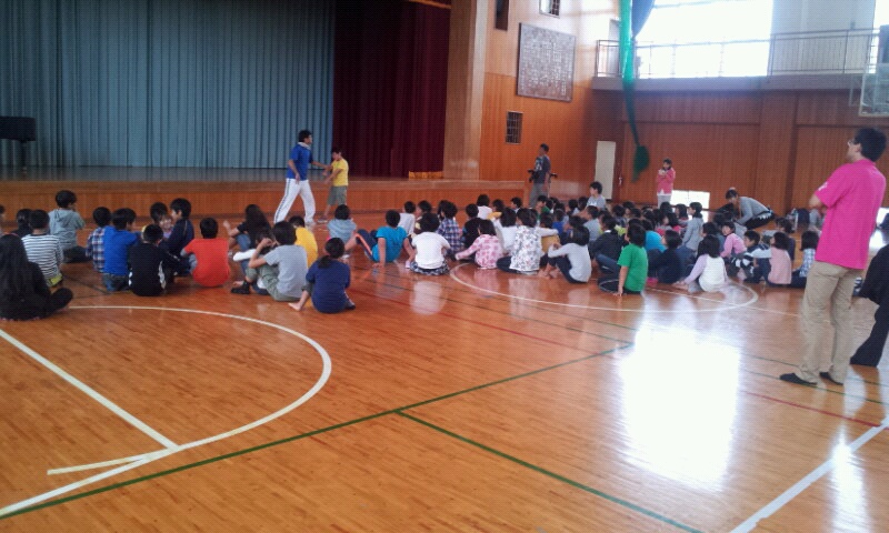 昼食後、体育館で5年生同士の交流会で盛り上がりました。