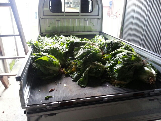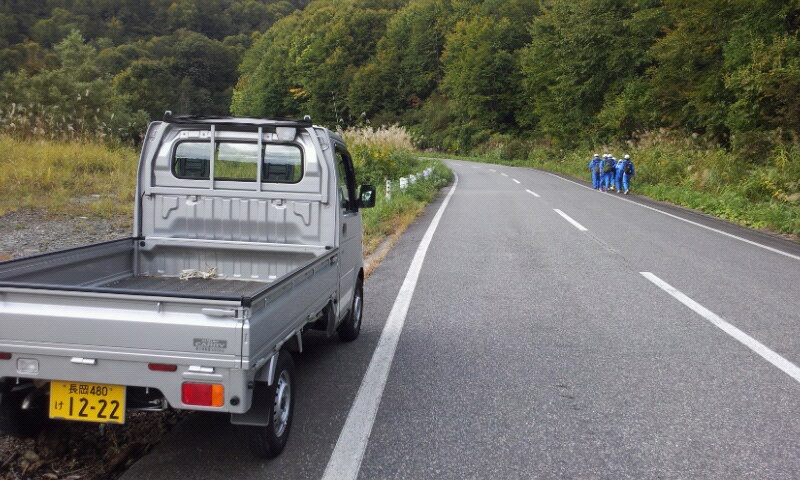 寒さと雨の予報が出ていましたので、車(軽トラック)に変更しました。