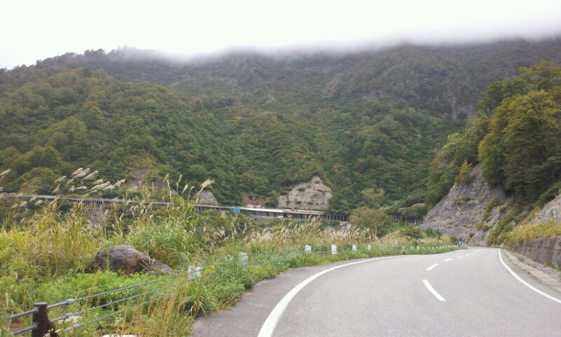 県境を越えると、断続的にカーブと下り坂が続きます。