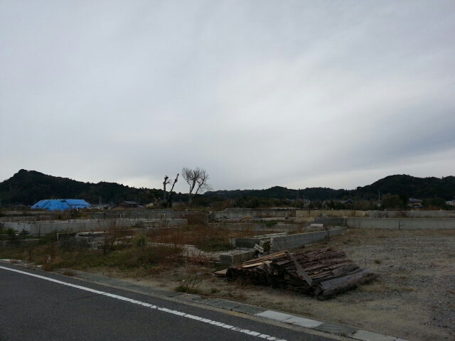 海岸付近では基礎だけ残っている津波被害の跡を見てきました。