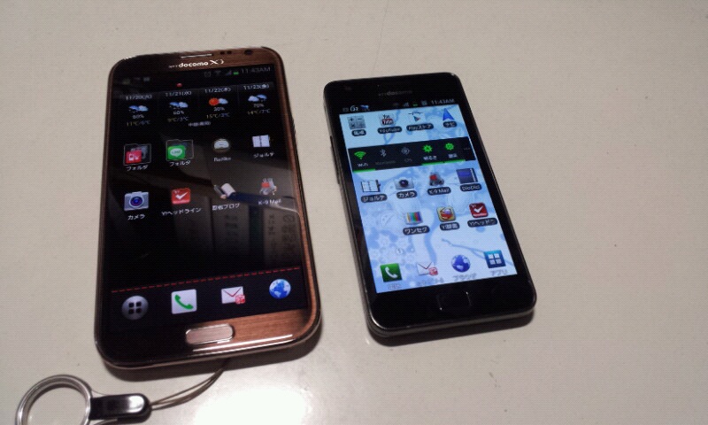 GALAXY NoteⅡSC-02E 左側で先週11/16金曜日に発売されたばかり。