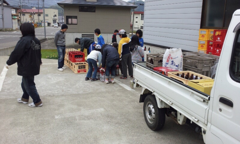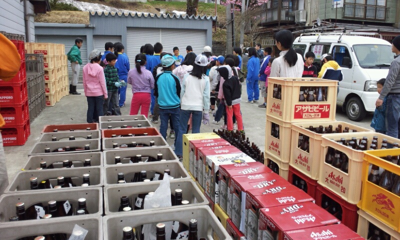 7:30からは守門中学校と須原小学校で空き瓶アルミ缶回収。