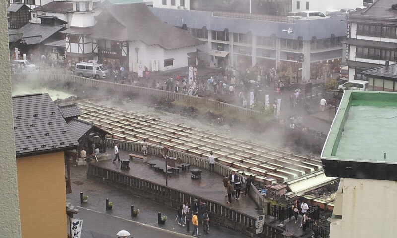 ホテルのお部屋からは湯畑が見えます。