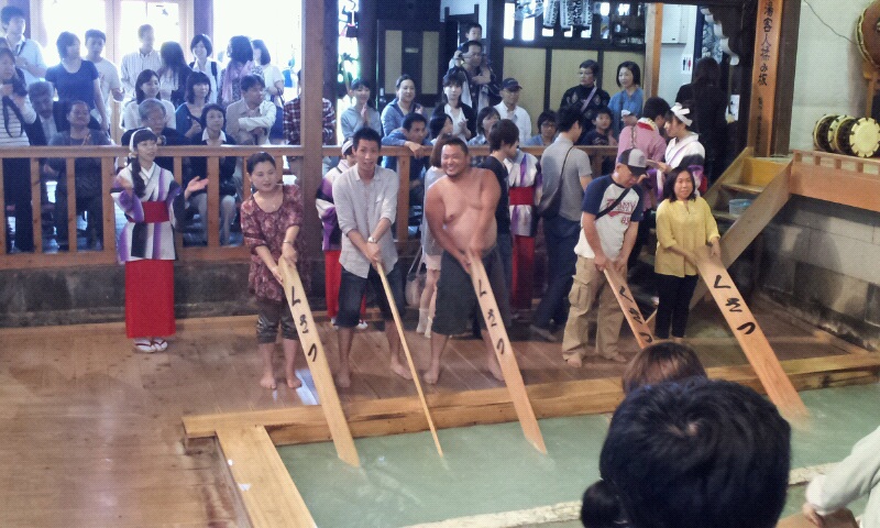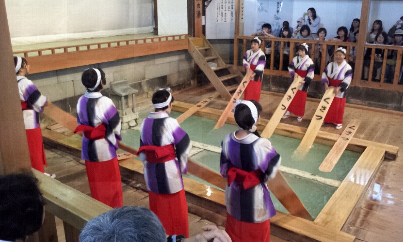 草津温泉の湯もみを見学。
