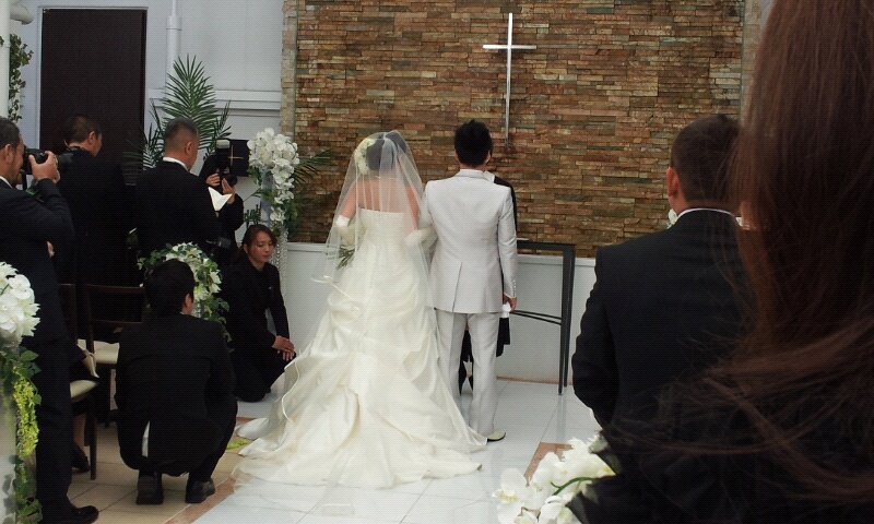 今朝は4時出発、スキー場のマイクロバスをお借りし、神奈川県二宮町の結婚式場に9:30予定通りに到着。