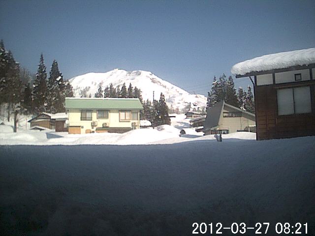 こんな陽気でも守門岳に山スキーに出掛けた宿泊客がおりました。