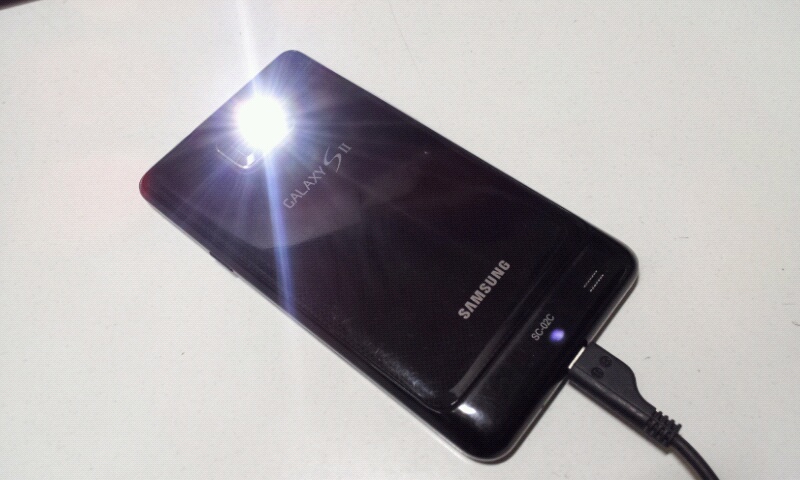 カメラのフラッシュを使いLED照明になります。