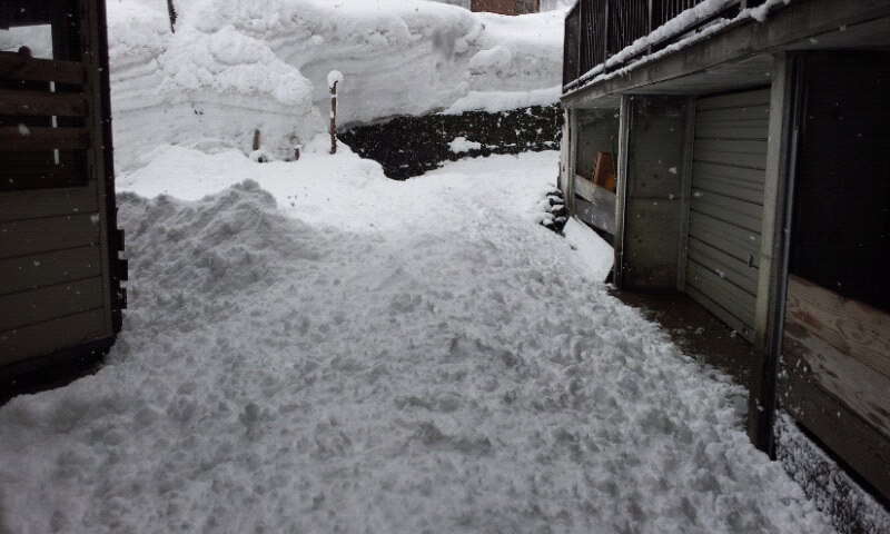 中庭は落下の雪でいっぱいに・・・・・