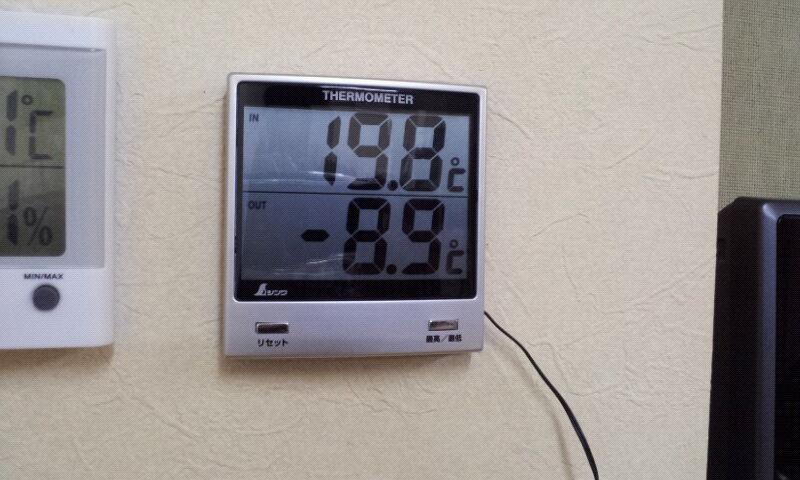 21時現在外は氷点下8.9℃、22時には氷点下9.9℃、