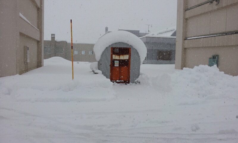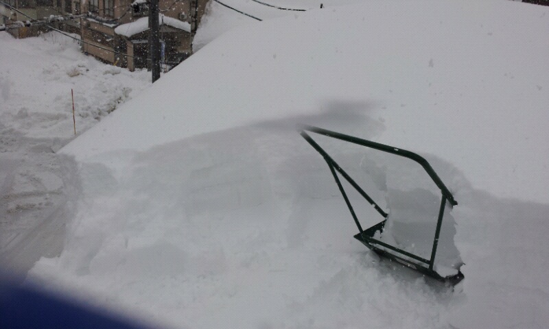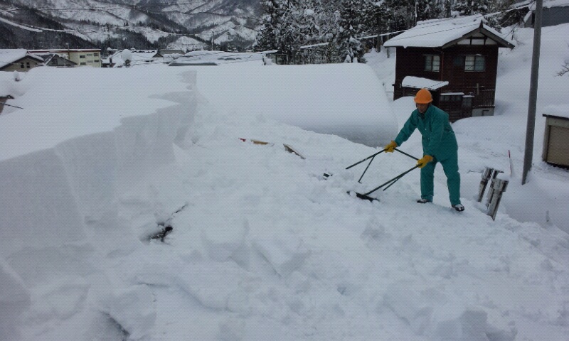 下屋根の雪は1mを越えて2回目の雪下ろし。