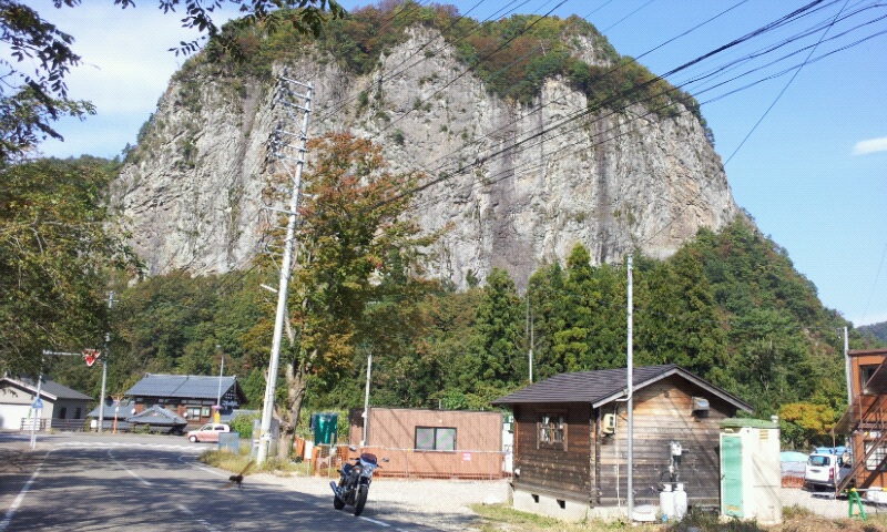 五十嵐川の上流にそそり立つ約200メートルの崖。新潟県の景勝百選にも選ばれているほか、昭和40年に「ハヤブサ繁殖地」として県の天然記念物に指定されている。そのダイナミックで壮観な紅葉が楽しめる。