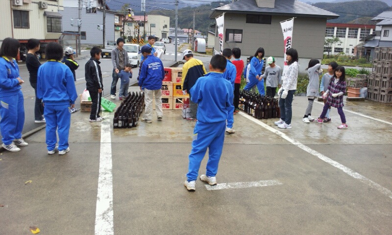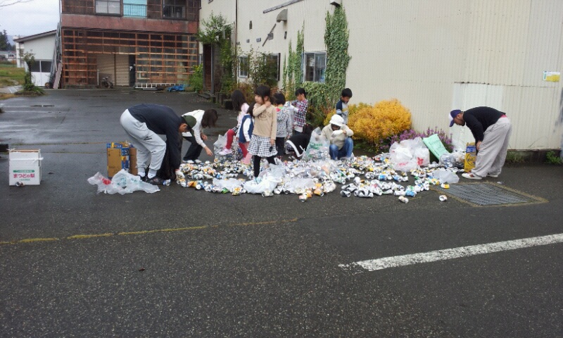 朝7:30から1時間ほど空きびん・アルミ缶回収で