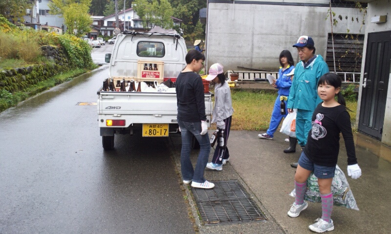 西村地域のこどもたちと一緒に回収に。