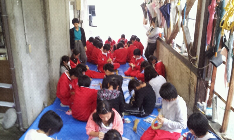 渕江中学校様、雨模様でしたが、レインコートを着たり傘をさして