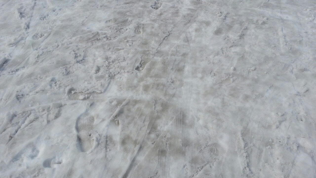 未明に少し降った雪と黄砂が原因で全く滑らない・・・・