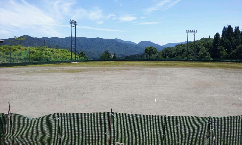 合宿がはじまるので、守門の旅館民宿が集まり、朝4:30-7:00まで地元のサンスポーツランド野球場の草取りです。