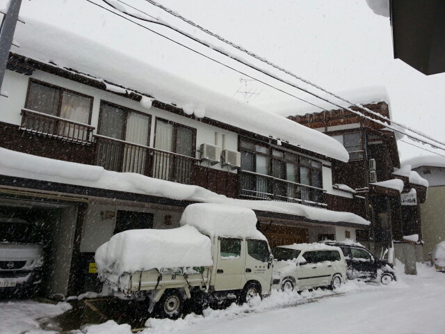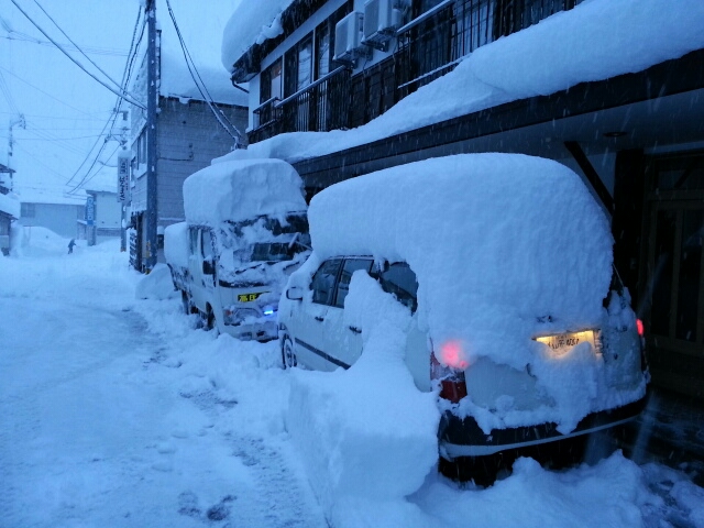 宿泊中のお客様の車もたくさんの雪がのっかっています。