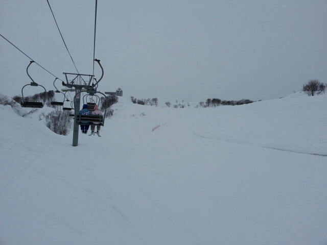 風も強く須原スキー場は下のペアリフトのみの運転でした。