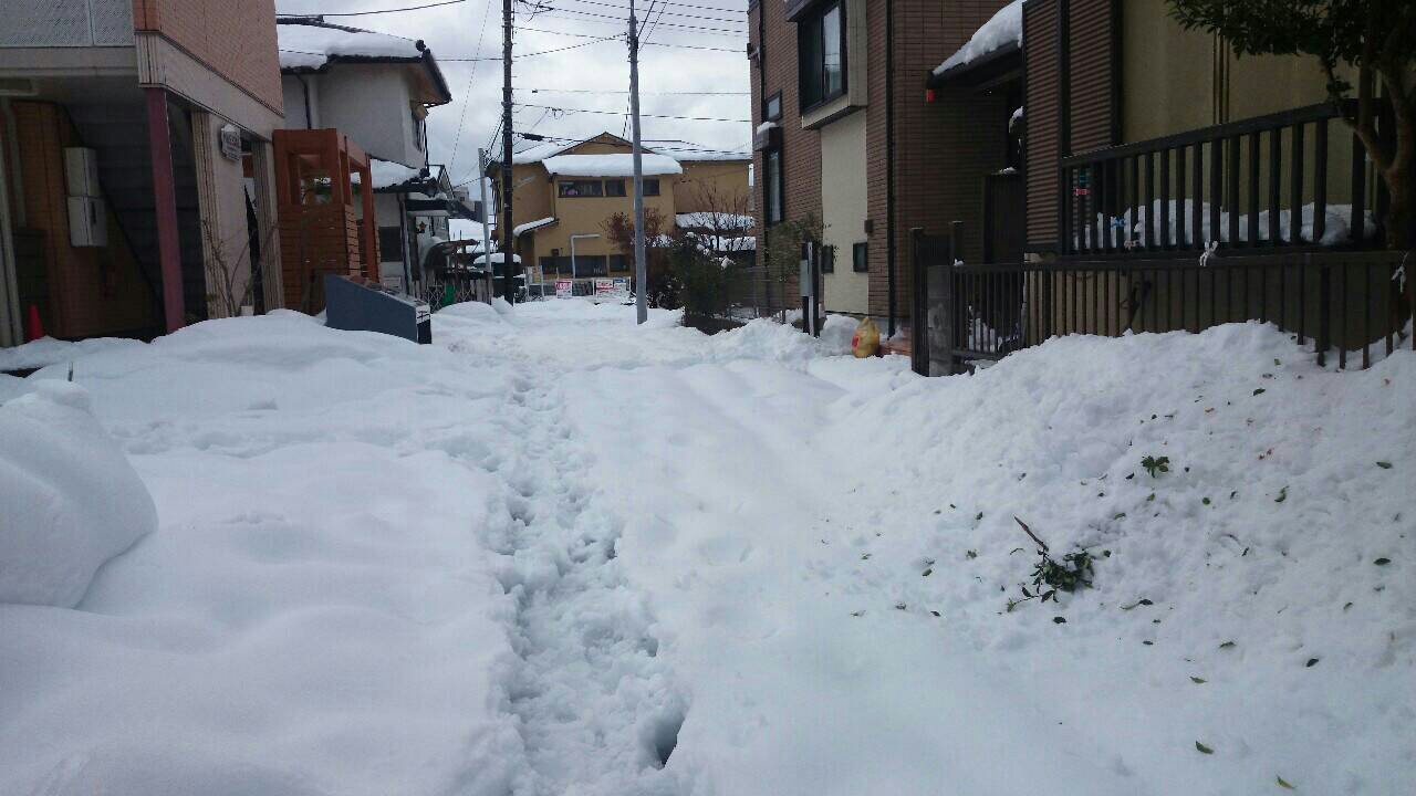 細い路地、冬タイヤがないと走れません。