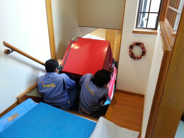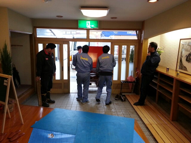 専門の業者さんから来てもらい、台車に乗せて撤去です。