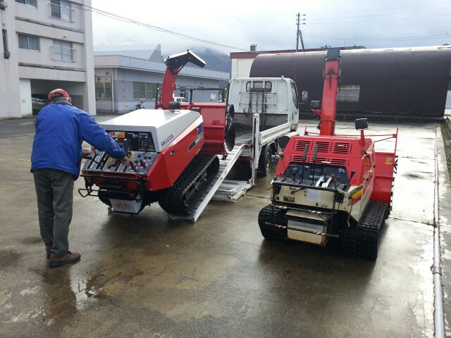 左が昨年新車を導入したワドウの除雪機、点検が終わり戻ってきました。