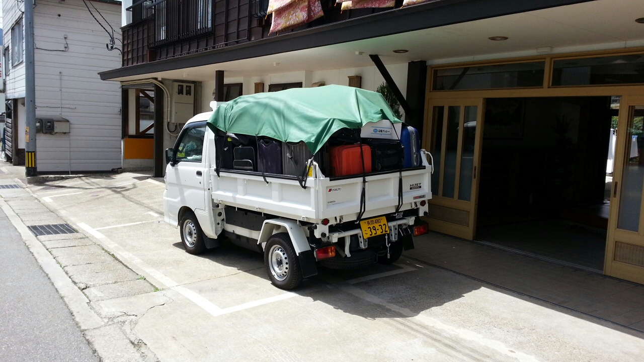40人分の荷物、昼食のお弁当と一緒に運びました。