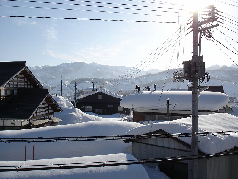 ご近所さんも3人ががりで雪下ろし。