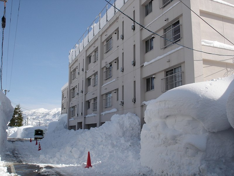駐車場の前の市営住宅、こちらも6人程で雪下ろし。