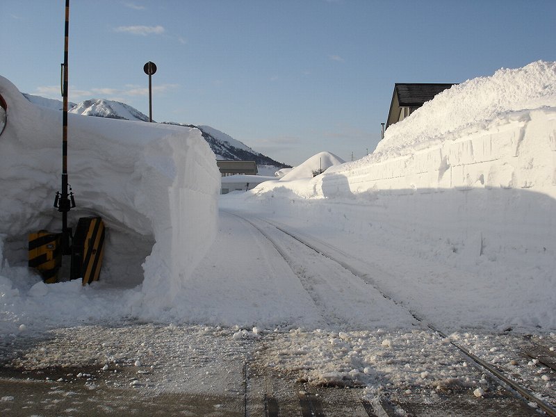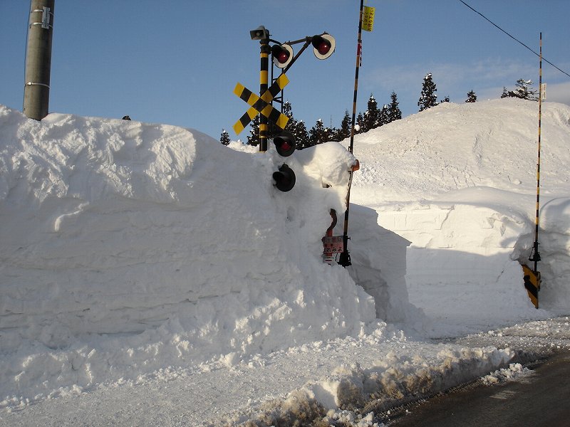 踏み切りの案内も雪で良く見えません。