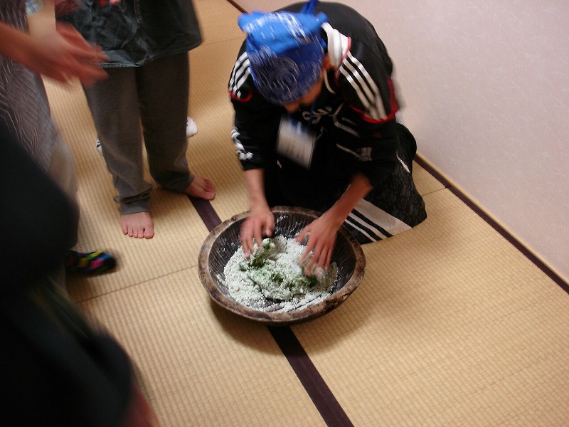 よもぎを混ぜて全員からこねてもらいました。
