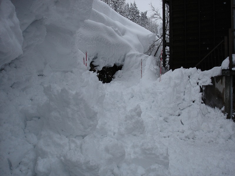 小西屋広間横の軒下、もう少しで窓のところまで雪が・・・・